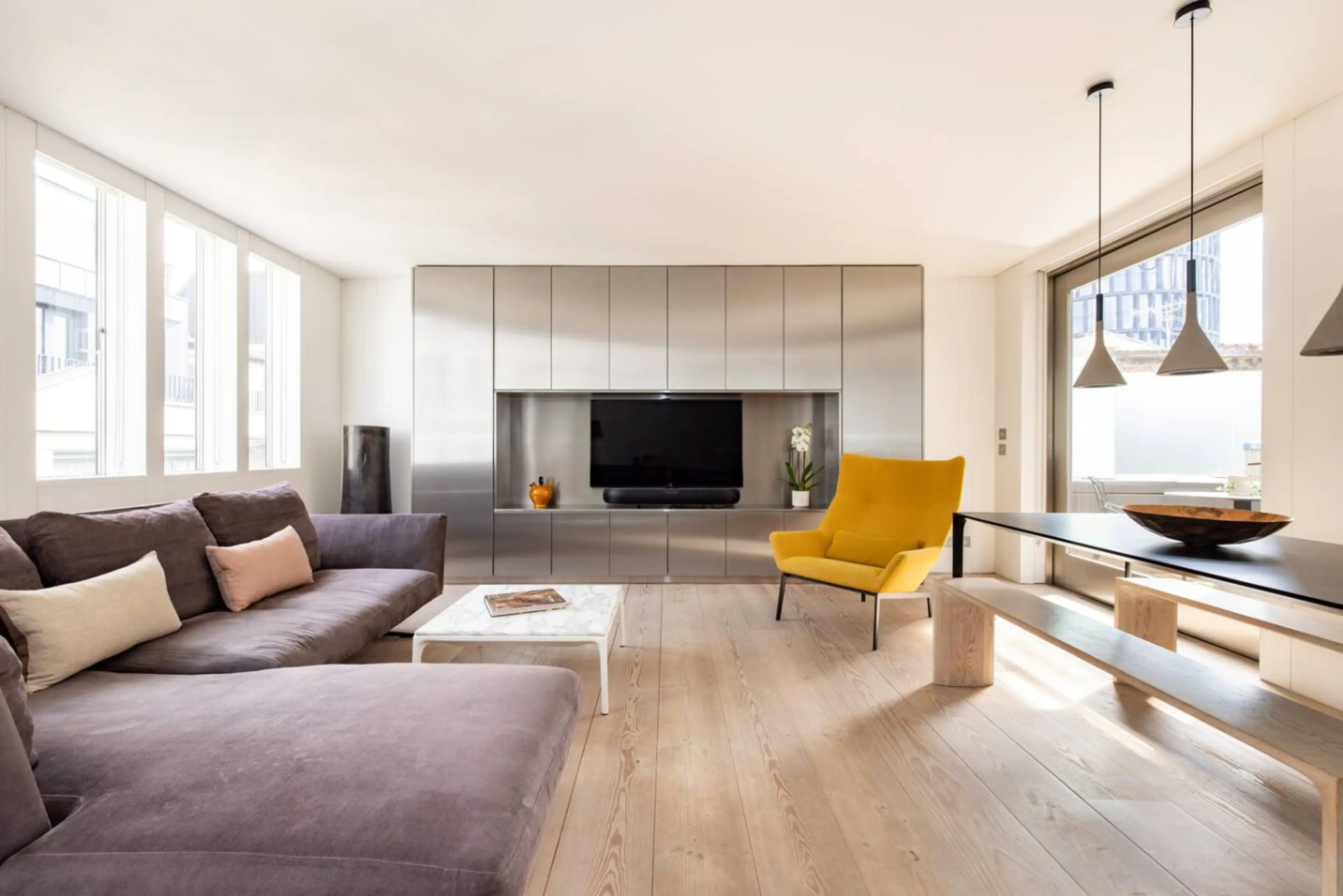 Combine crisp and modern interiors with lavish extras, like a custom-designed glass curtain wall, and you’ll get this flash penthouse apartment in the thumping heart of Shoreditch. Natural light pours through the large south-facing window and illuminates the sleek living space. Surrounded by some o...