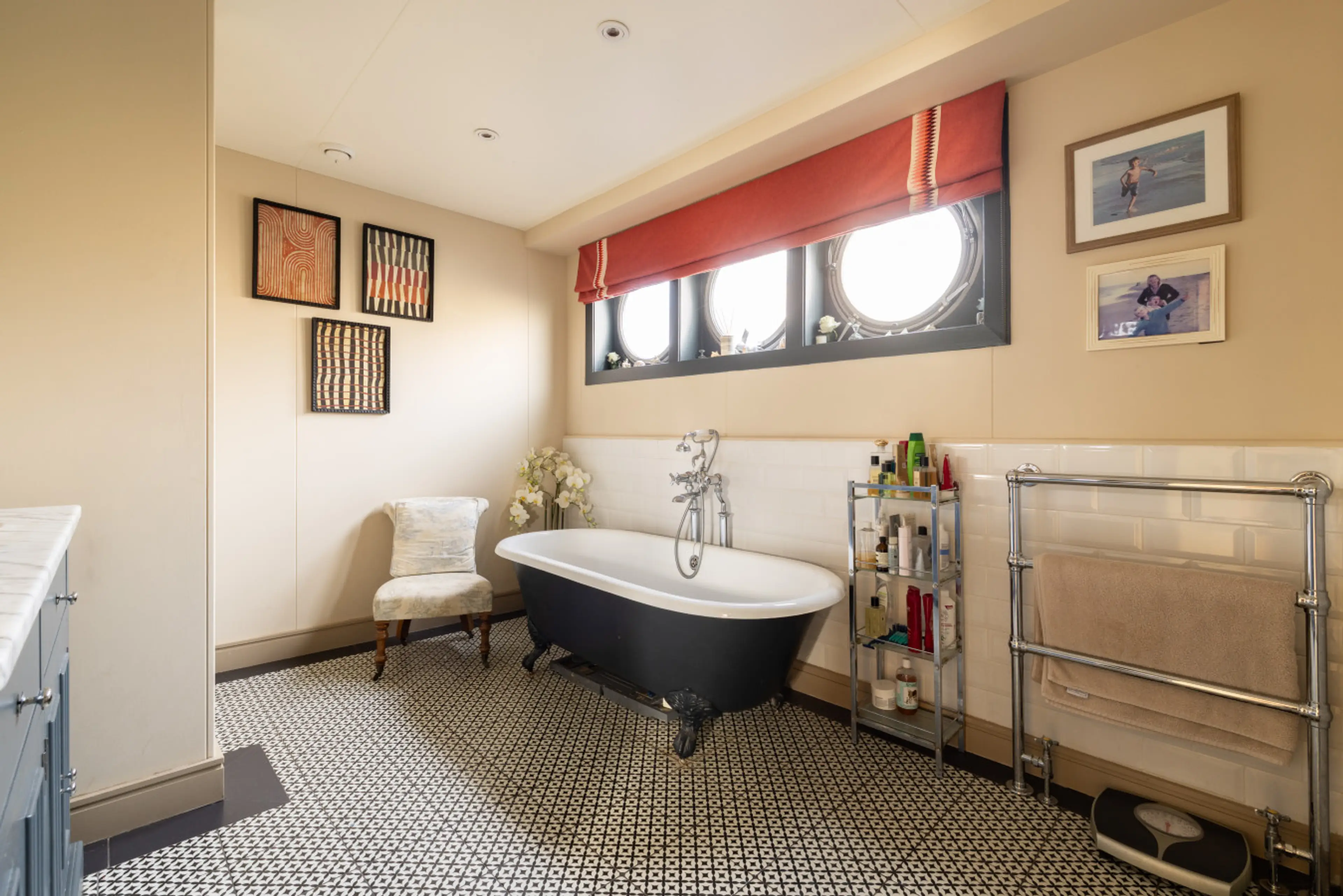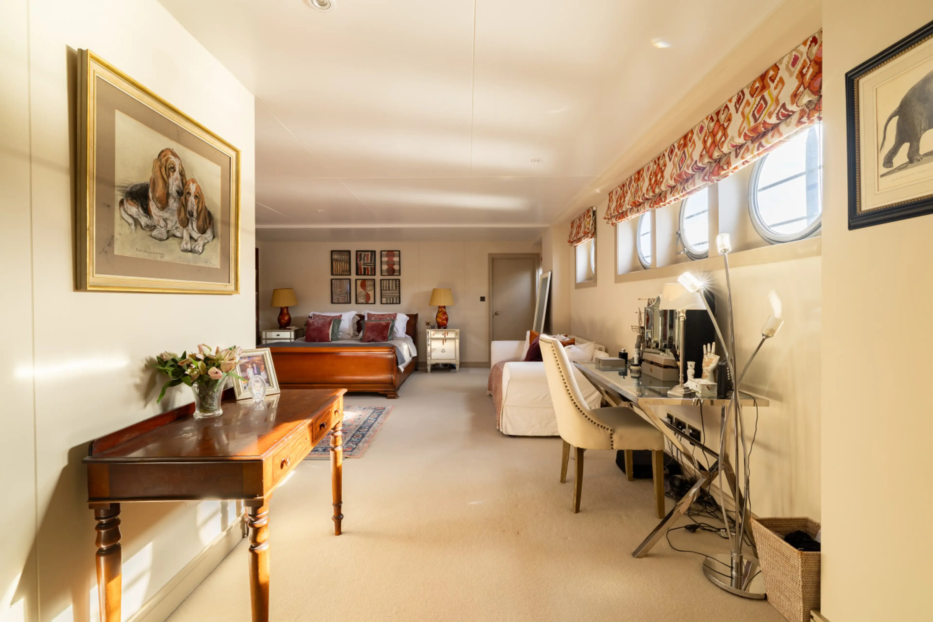 Experience London from the water on this stylish boathouse. Moored along the Thames Embankment in the heart of Chelsea, you'll be in one of the city's most desirable neighbourhoods, with restaurants, cafes and shops right on your doorstep. Inside, the spaces are bright and elegant, with floor-to-cei...